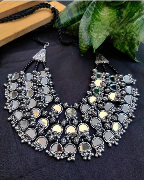 Suvesha Silver Plated Oxidized Mirror Necklace
