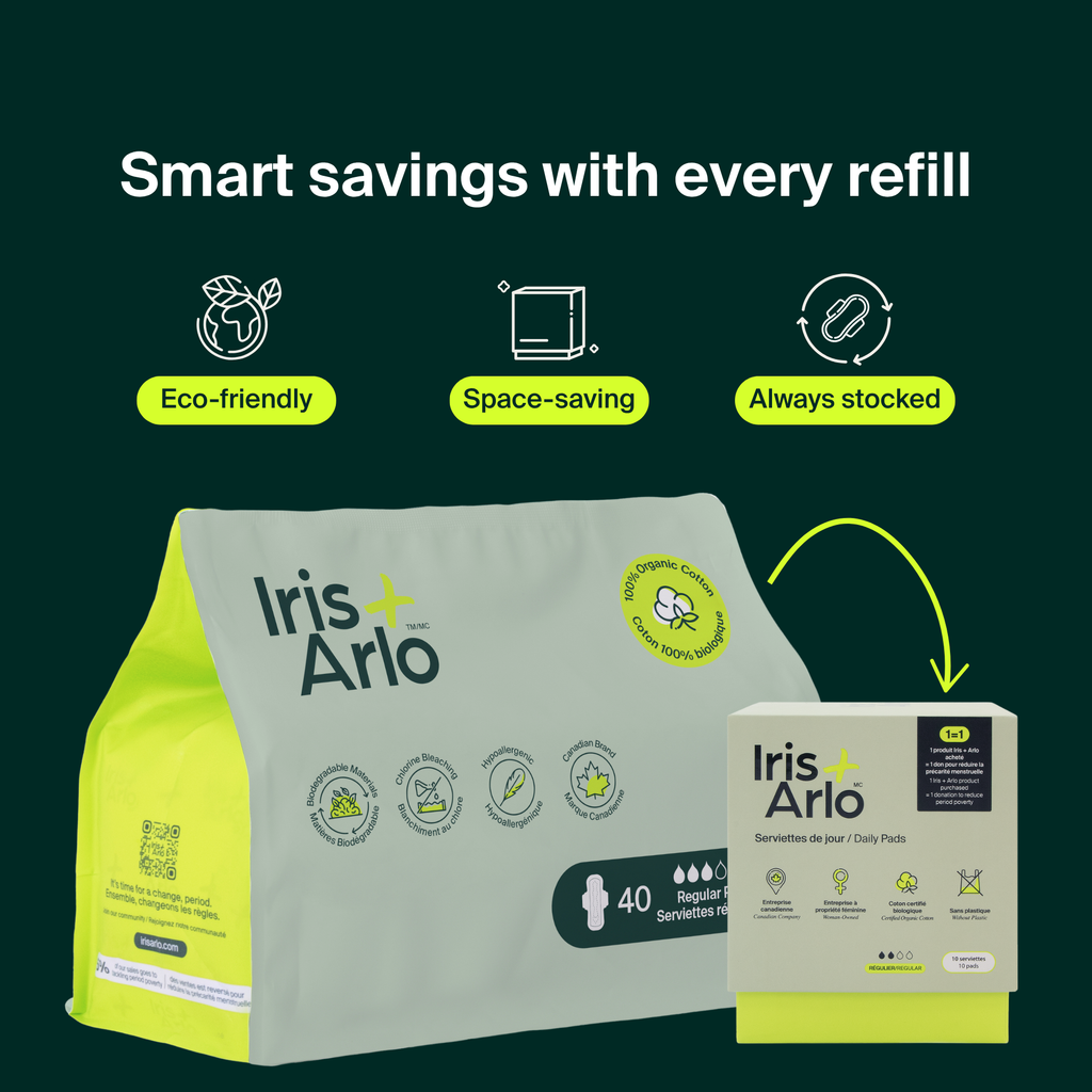 Découvrez nos serviettes menstruelles avec ailettes composées uniquement de coton 100% biologique certifié GOTS, sans aucune substance chimique.
