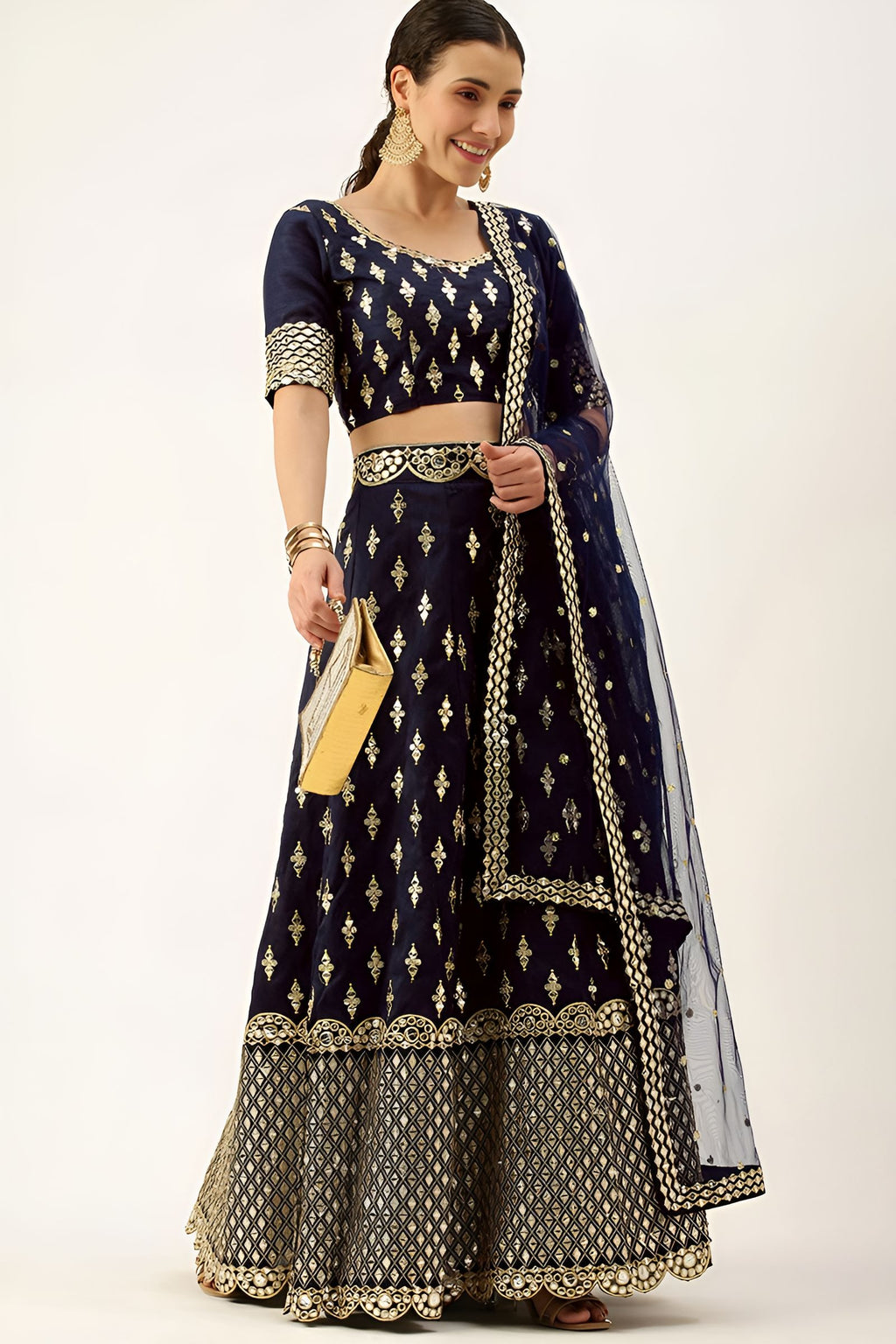 ✔ Lehenga Fabric: Premium Georgette in Elegant Navy Blue