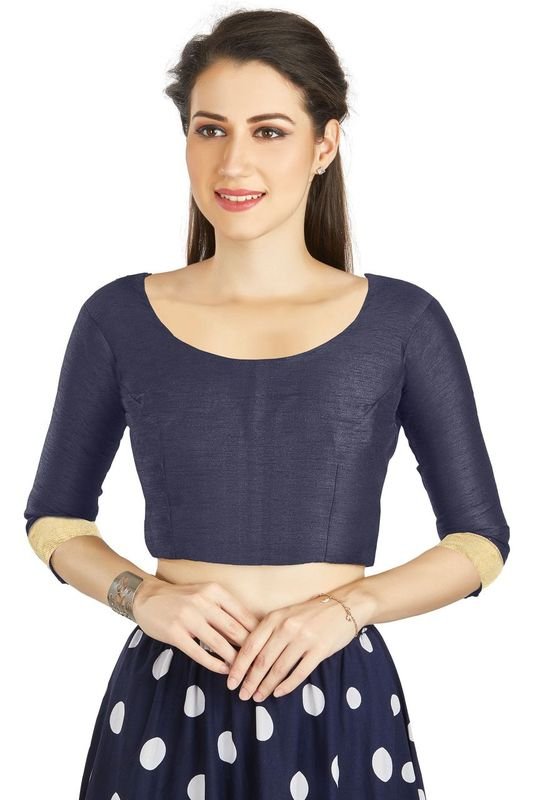 Aastha fashion Turquoise Art Silk Blouse Fabric Sleeve Button Design Blouse work