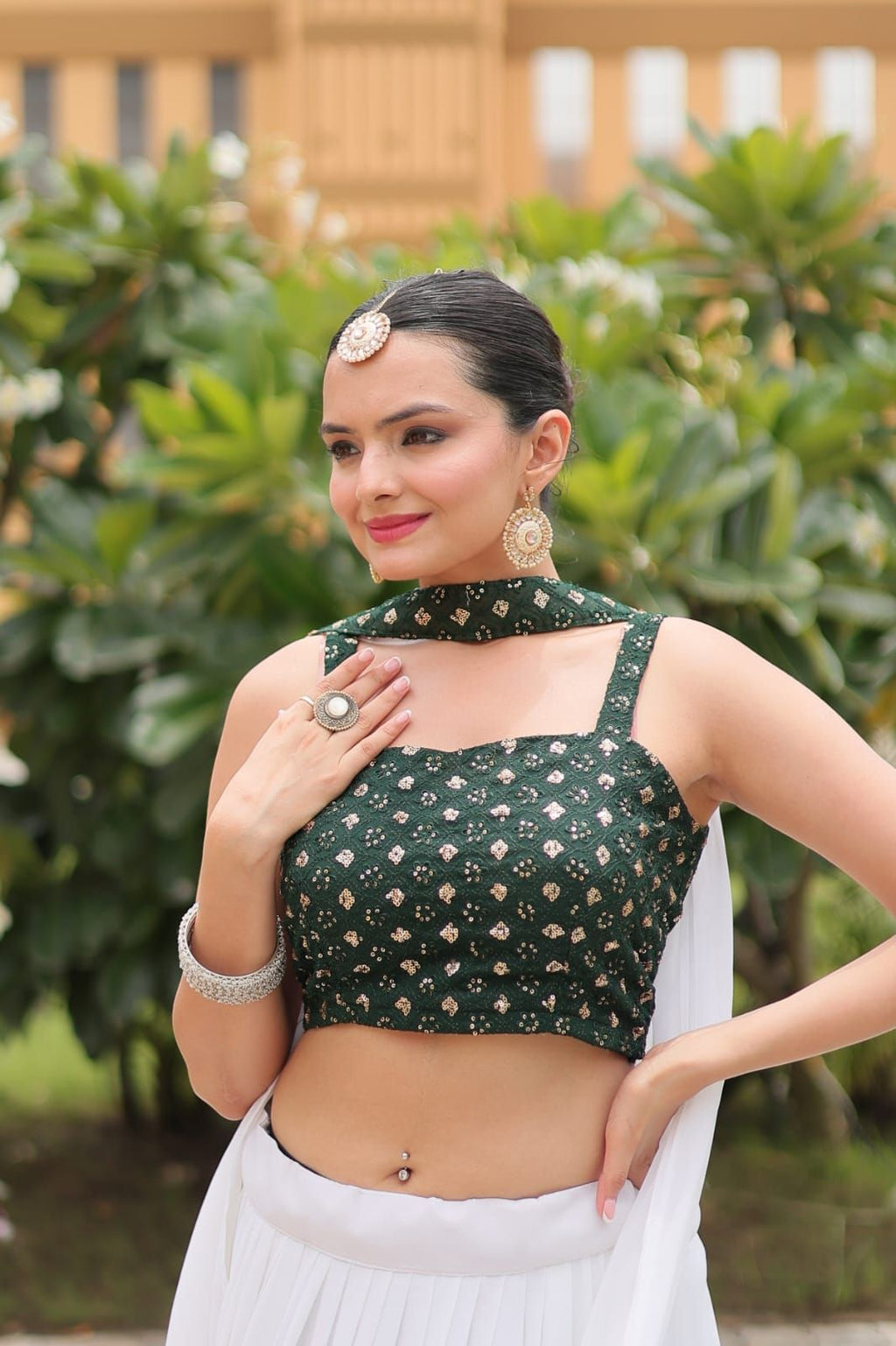 Aastha fashion white pure georgette lehanga green blouse fabric embroidery work