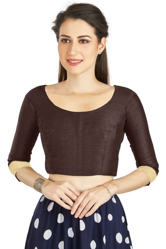 Aastha Fashion Wine Art Silk Blouse with Matty Work in Sleeve Design