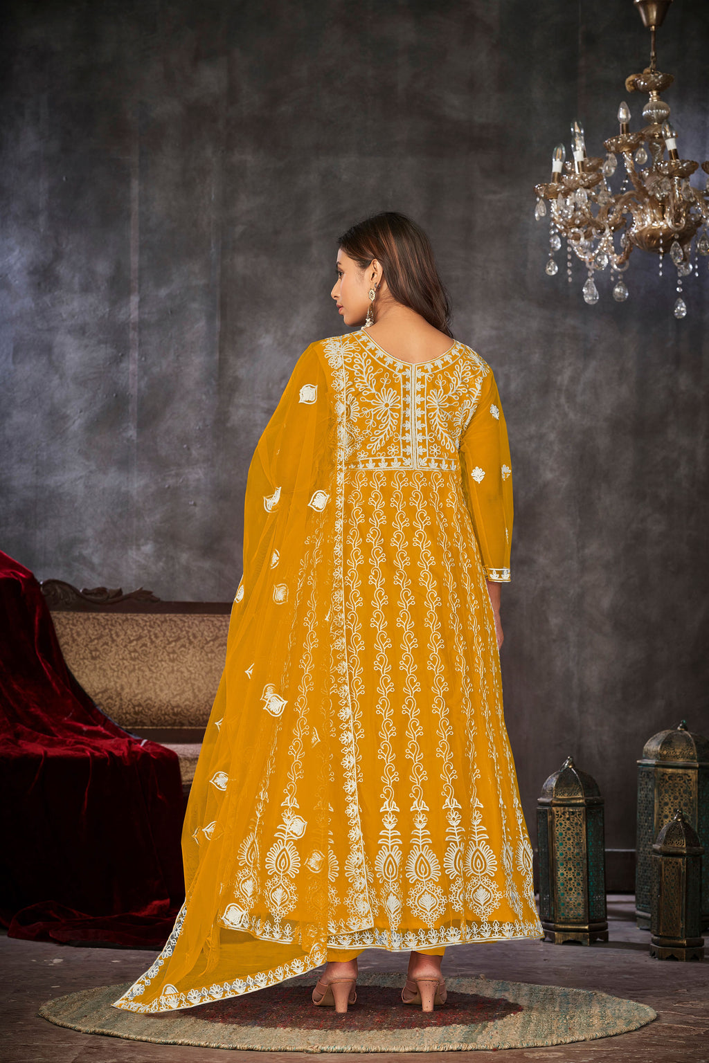 Bring elegance and warmth to your festive attire with the Mustard Anarkali Suit, designed to make you the center of attention at any occasion.