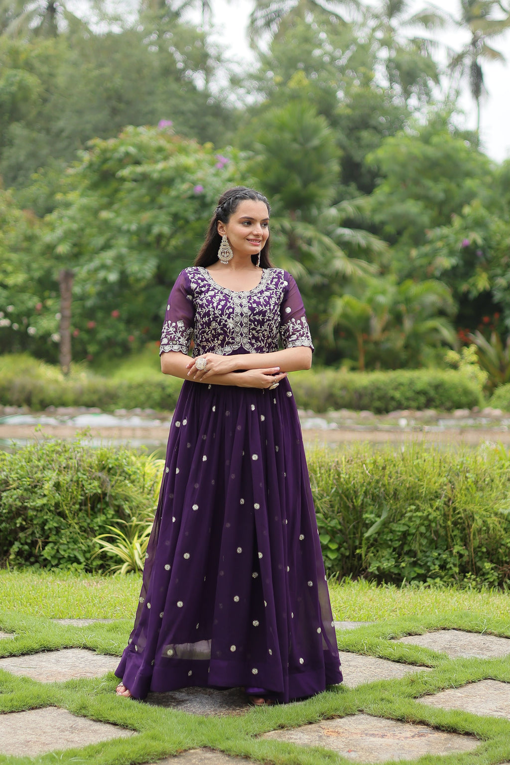 Aastha Purple Faux Blooming with Gown Embroidery Zari Sequins-work