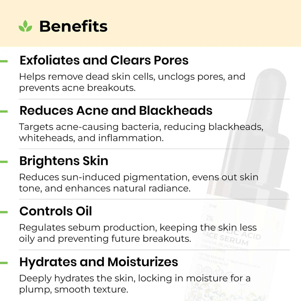 - Fights Acne: Salicylic acid helps clear existing pimples and prevent new ones from forming.