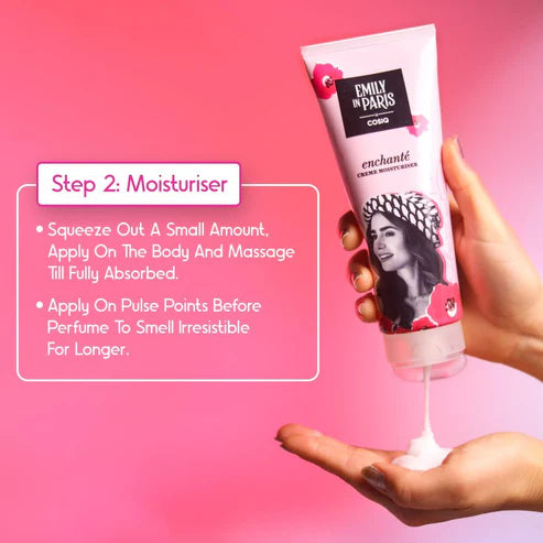 Channel your inner Emily with this bold yet feminine fragrance trio! Featuring a captivating perfume with floral and musky notes, a refreshing shower gel, and a rich moisturizer, like Emily.