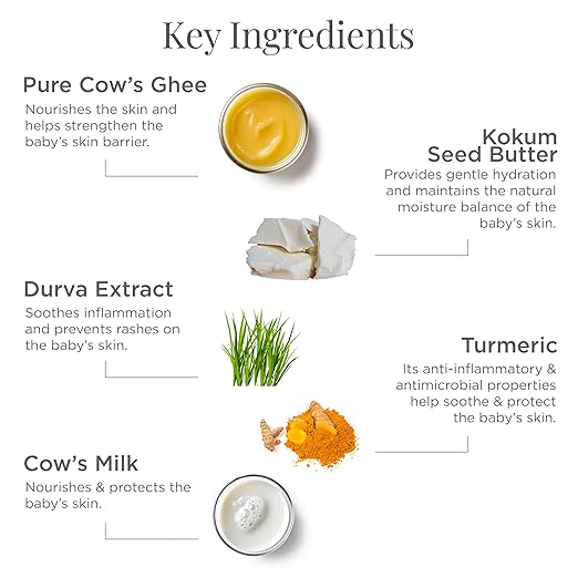 Forest Essentials Dasapushpadi Nourishing Full Cream Milk Soap offers a gentle, silken formula that delicately cleanses your baby’s sensitive skin, ensuring it remains soft and nourished. Handcrafted with Pure Desi Ghee from Cow’s Milk and enriched with cold-pressed oils from Almonds, Kokum Seeds, and Olives, this soap deeply moisturizes and protects. Infused with Organic Turmeric, known for its powerful antibacterial effects, and Durva Root to soothe and prevent rashes, it provides comprehensive care for your baby’s delicate skin.