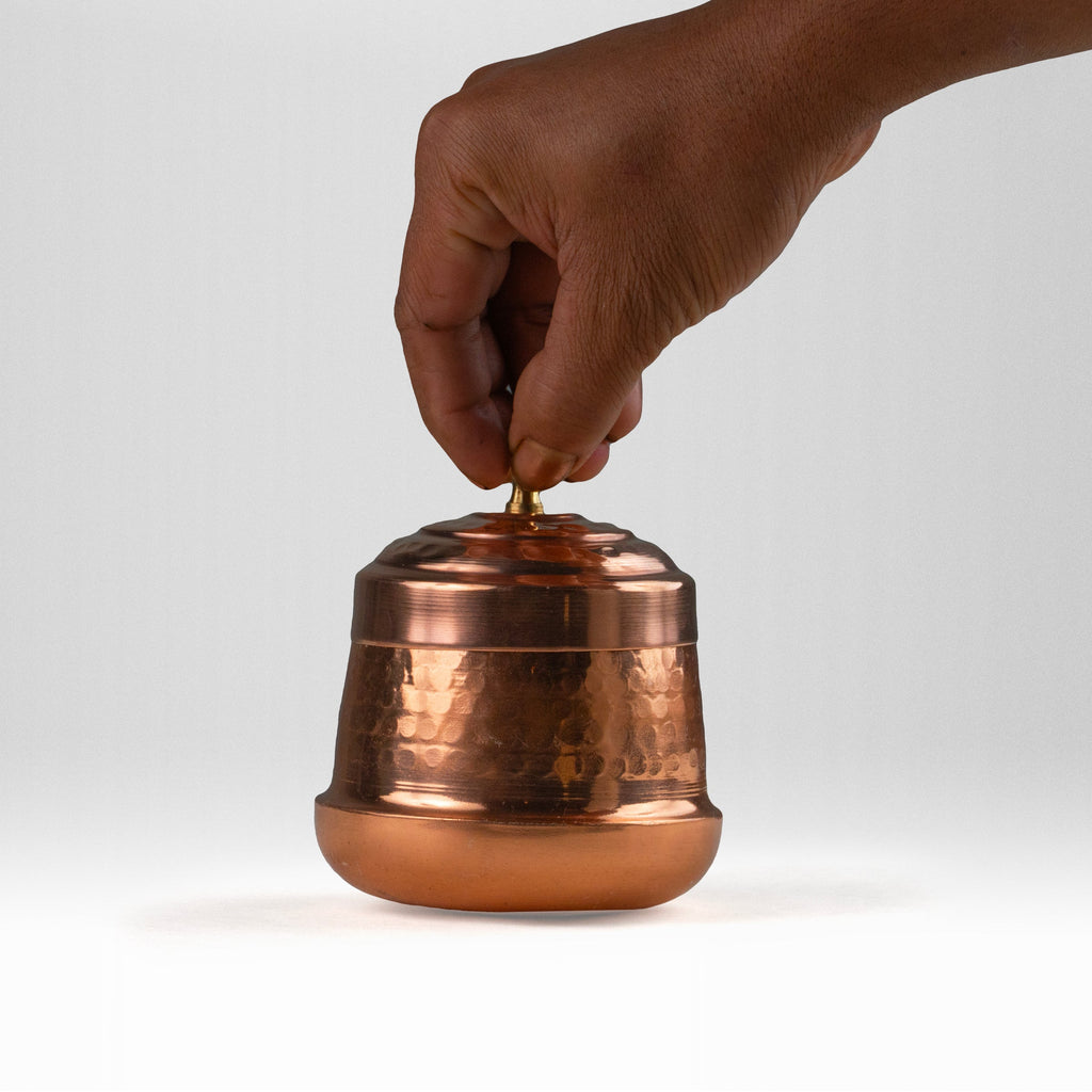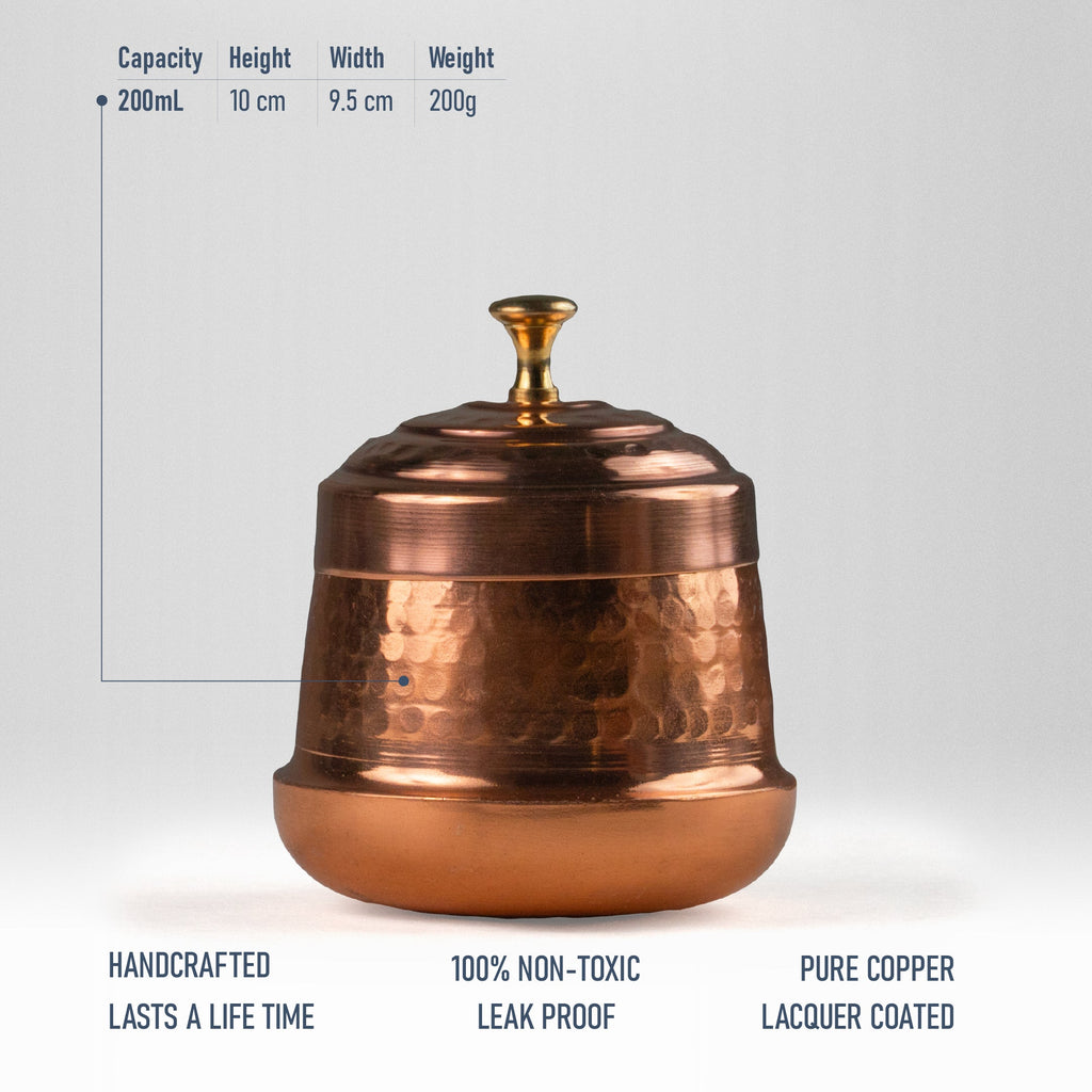 Pure Copper Berry Dry Fruit Jar/Dabba/Container | Jar for Dry Fruits and Chocolates | Hammered, 10cm x 9.5cm, 200ml