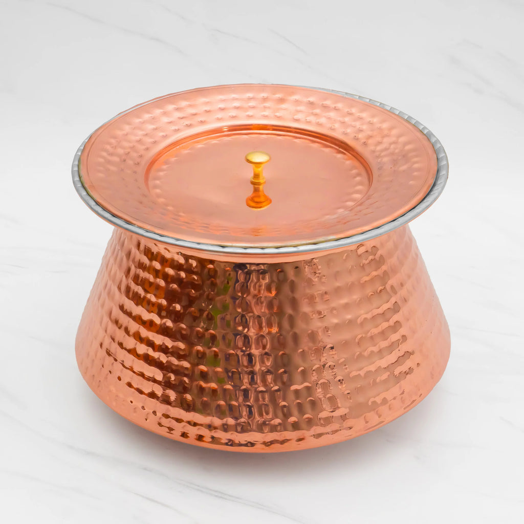 A Copper Handi is a traditional Indian cooking vessel, typically deep and round in shape. Known for its excellent heat conductivity, copper ensures even cooking and distributes heat rapidly. This results in food that is cooked perfectly while preserving its natural flavours. Copper is believed to enhance the taste of food, especially curries and gravies. Additionally, it is considered to have antimicrobial properties, helping maintain hygiene. While offering superior cooking performance, a copper Handi also adds a touch of elegance to your kitchen, making it a prized possession for culinary enthusiasts.