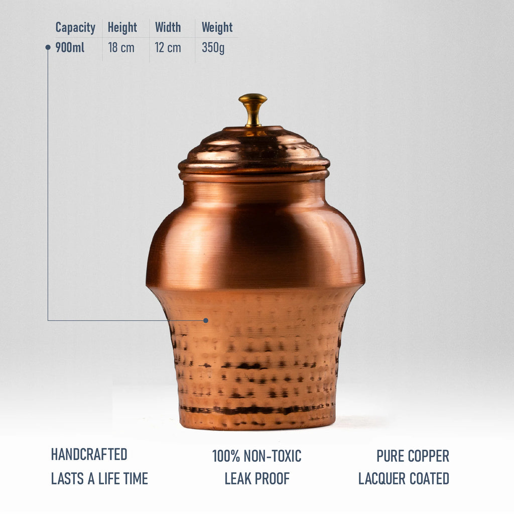 Health Smith Pure Copper Mushroom Jar | Copper Jar for Water, Dry-fruits, Chocolates and Decoration
