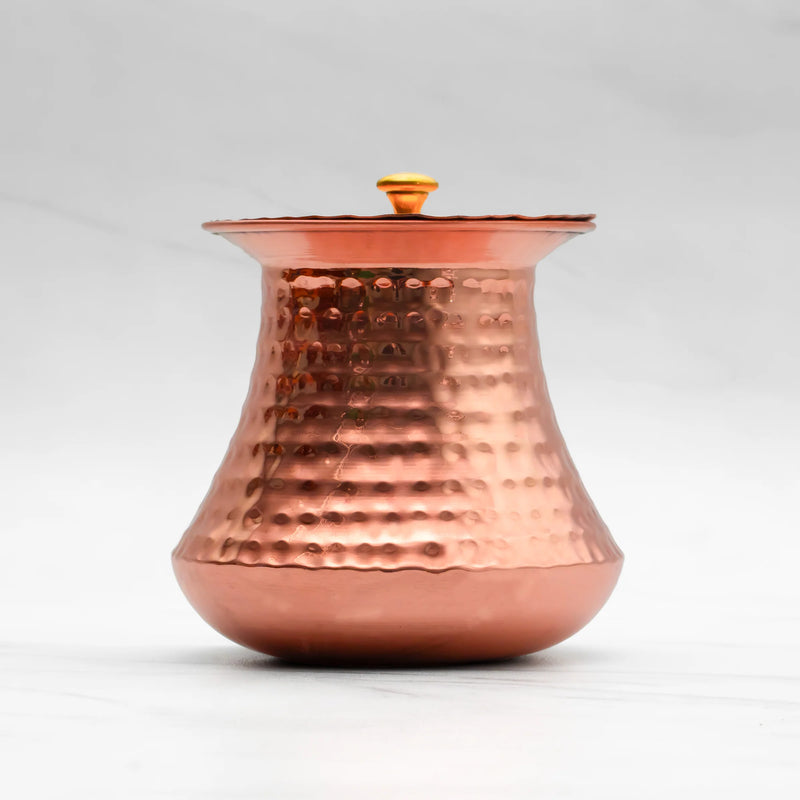 Pure Copper Pistachio Lota with Hammered Finish With Lid – Lacquer Coated for Long Life