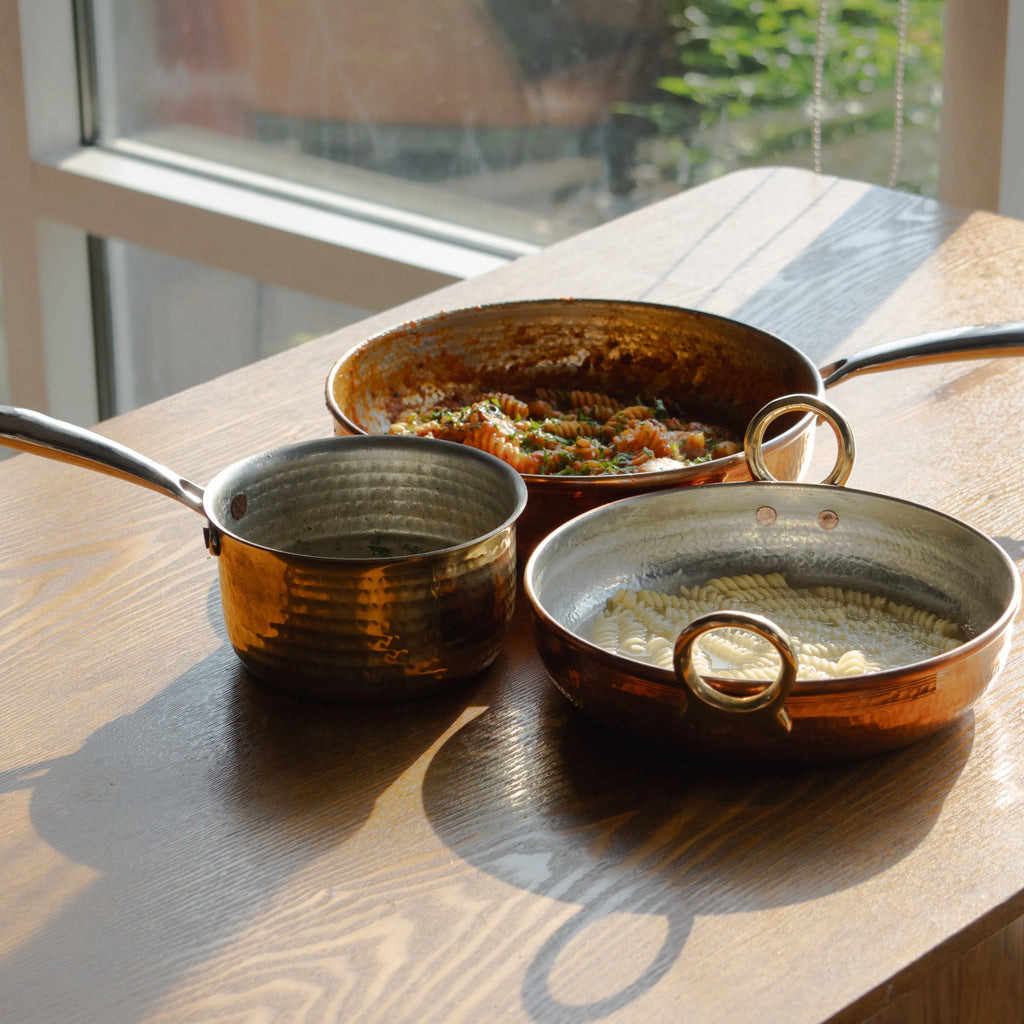 Pure Copper Saute Pan with Heat Resistant Handle for Cooking – Tin Coated (Kalai) – Handcrafted Hammered & Traditional Design