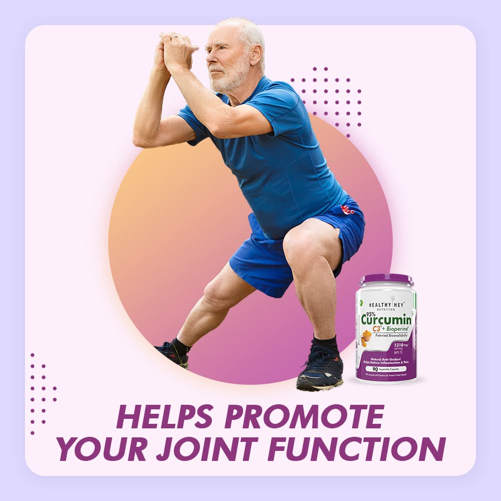 HealthyHey Nutrition Curcumin with Bioperine (Ultra Pure) | Organic Turmeric, 90 Vegetable Capsules