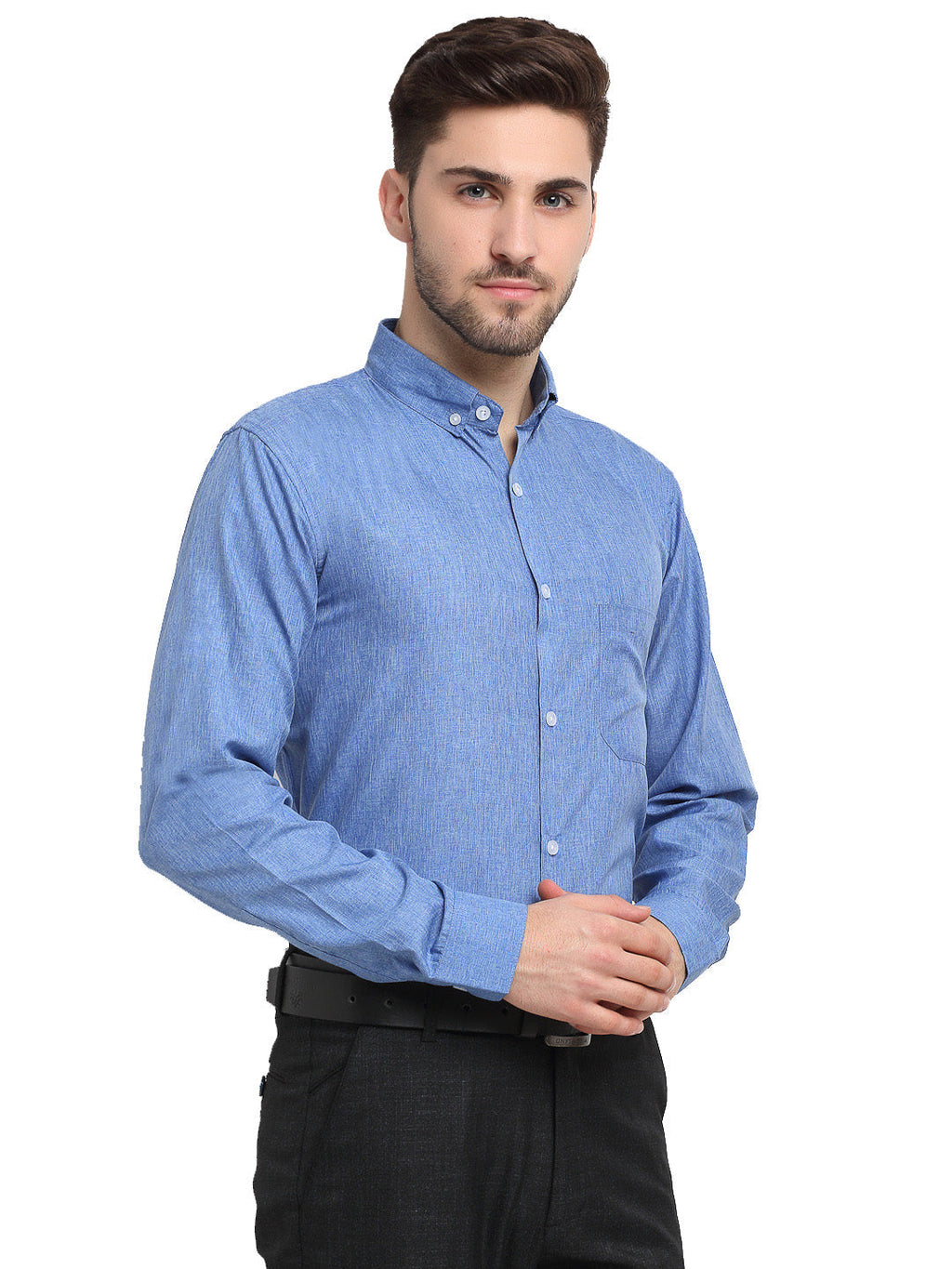 Indian Needle Blue Men's Button Down Collar Cotton Formal Shirt