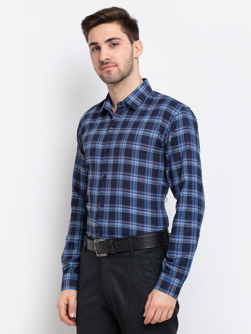 Indian Needle Blue Men's Checked Cotton Formal Shirt