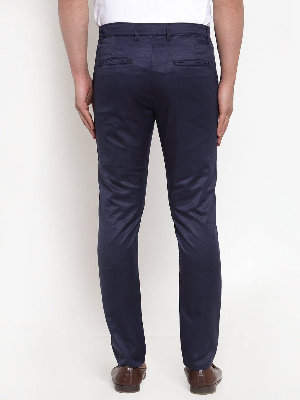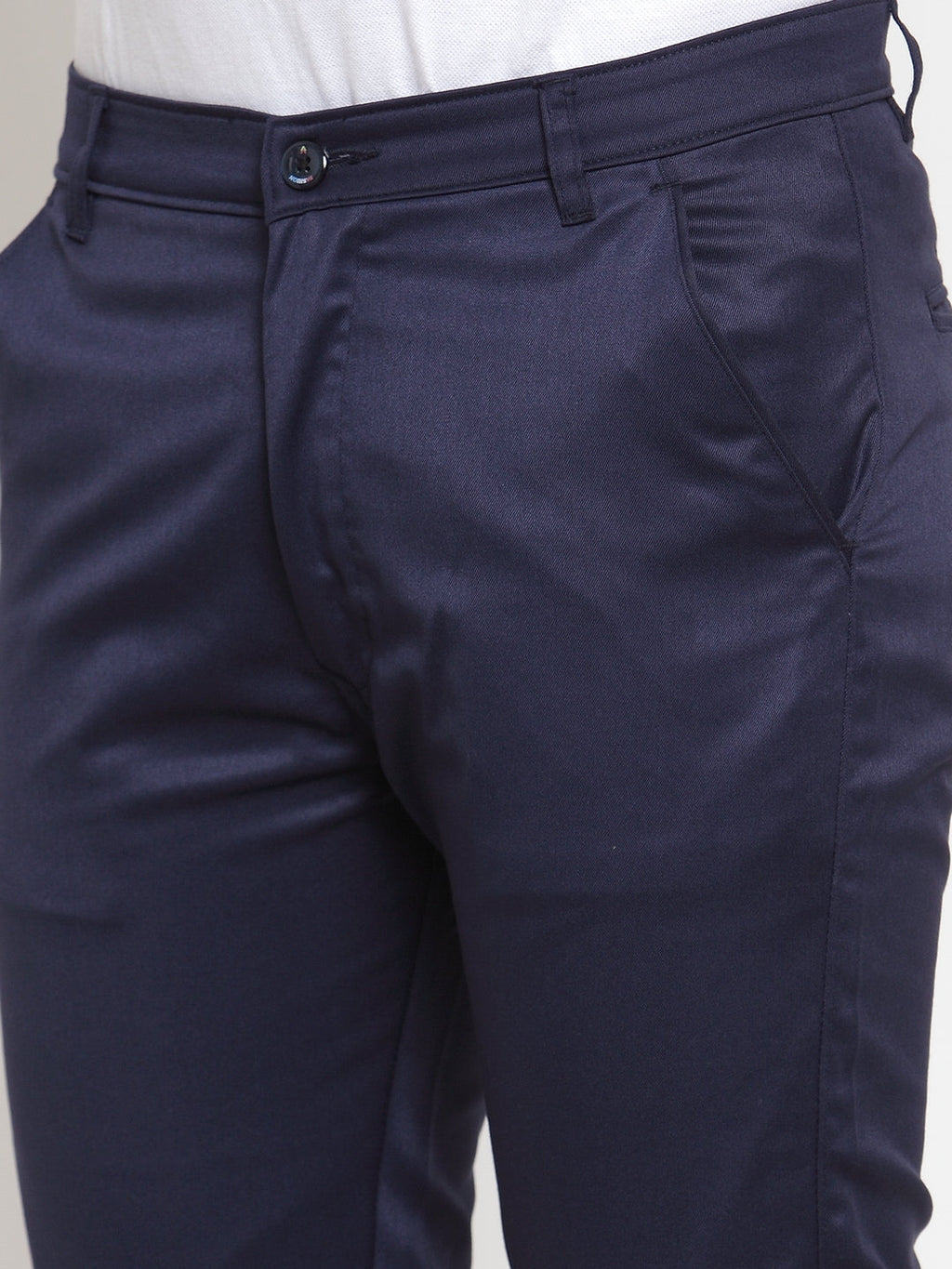 Navy Solid Trousers, has a button closure, four pockets