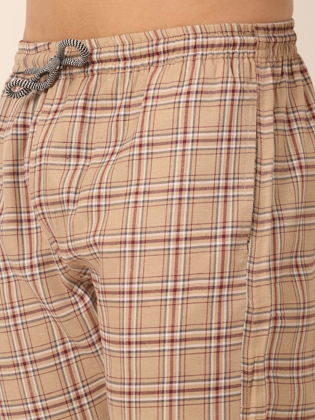 Brown Checked regular fit track pants has an elasticated waistband with drawstring closure, 3 pockets