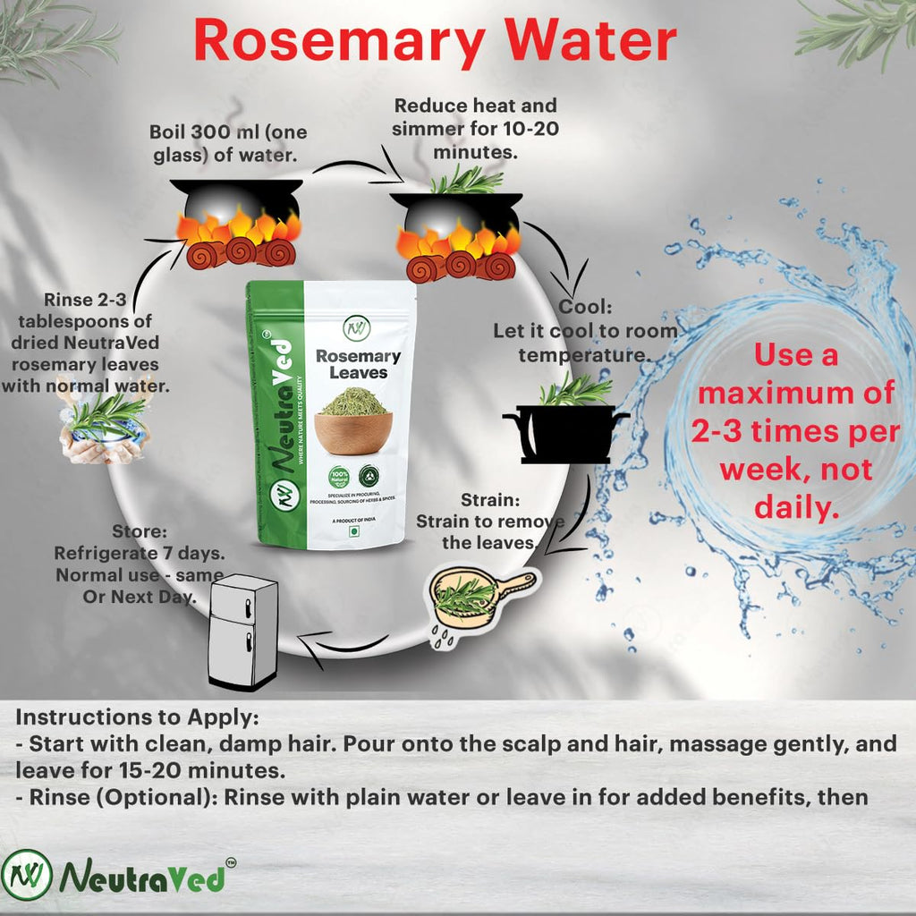 NeutraVed Rosemary Leaves deliver a complete hair care solution in one convenient package. This 100g bundle includes premium dried rosemary leaves, a precision comb applicator, and a mist spray—everything you need to harness rosemary's natural benefits for stronger, healthier hair growth. Use the leaves to brew rosemary water, craft homemade infusions, or blend into nourishing powders. The included applicator ensures targeted application, while the spray bottle makes daily treatments effortless. Pure, unadulterated rosemary with no additives—perfect for DIY hair oils and custom hair care routines. Transform your hair naturally with this versatile, all-in-one rosemary collection.