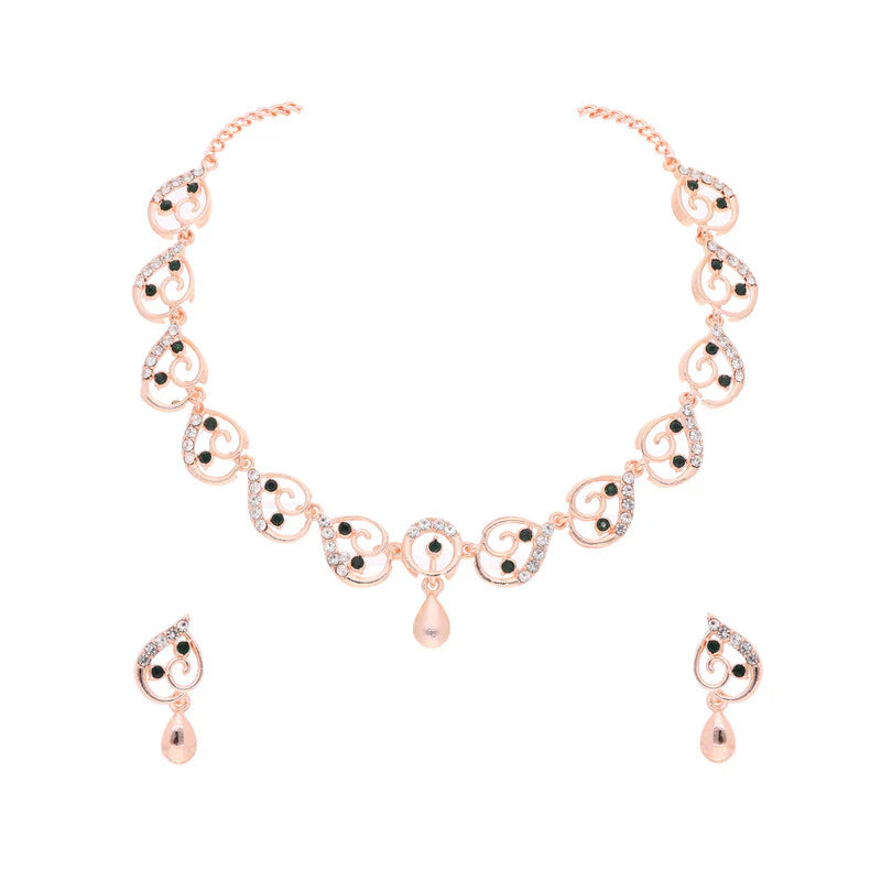 Tehzeeb Creations Brass Rose Gold Plated Green Colour Necklace With Earrings