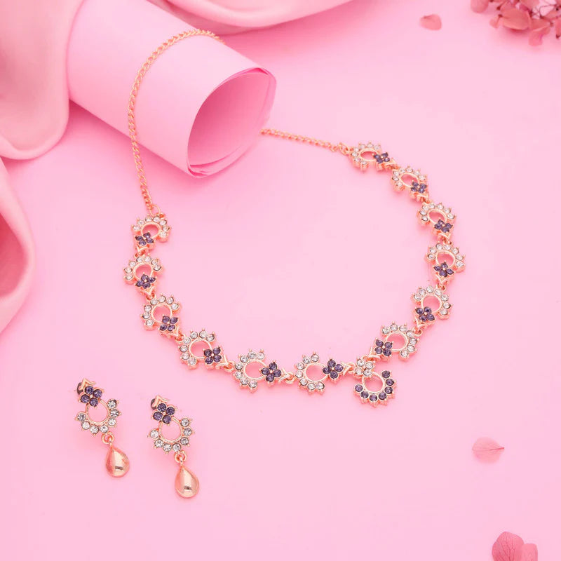 Tehzeeb Creations Gold Plated Lavender Diamond Necklace With Earrings