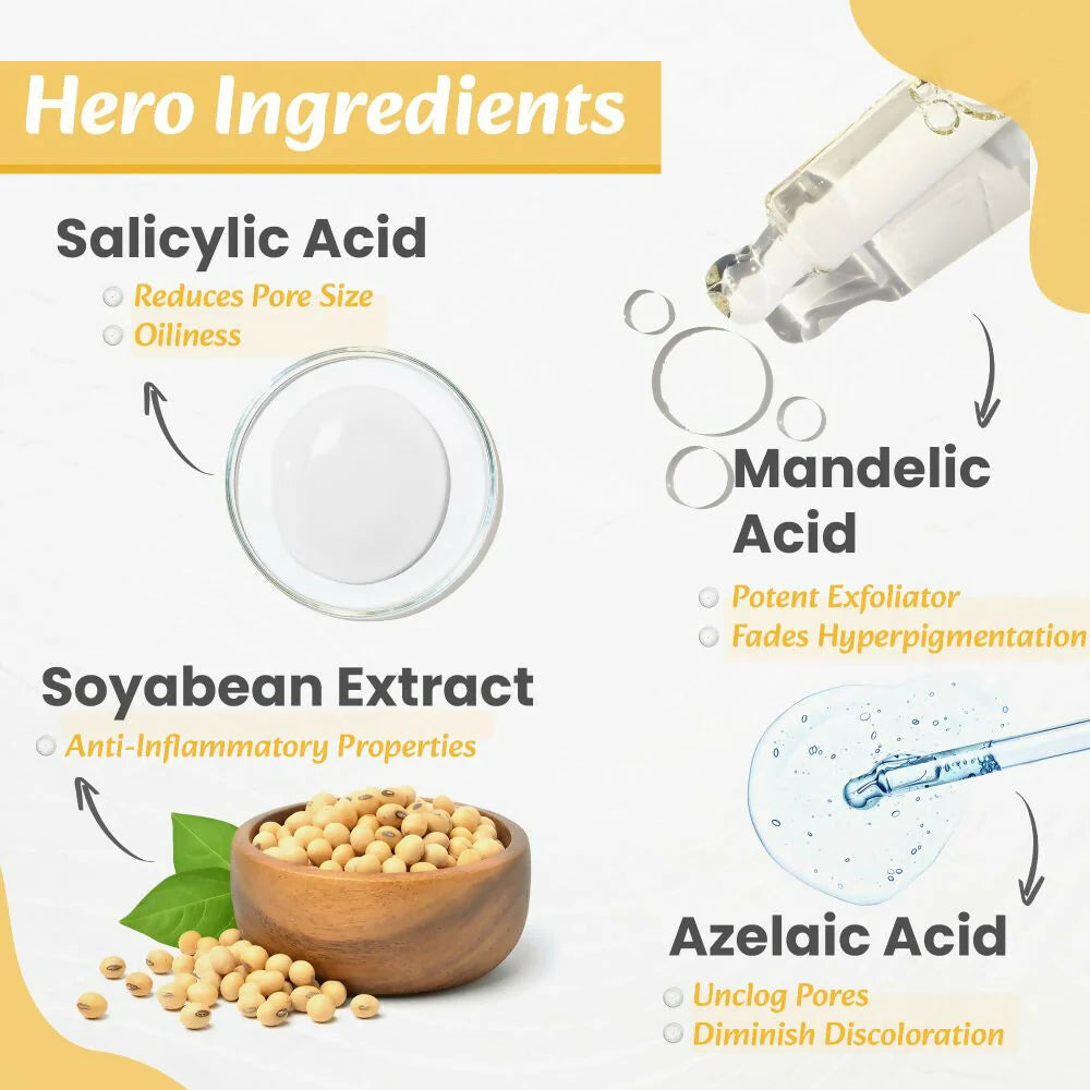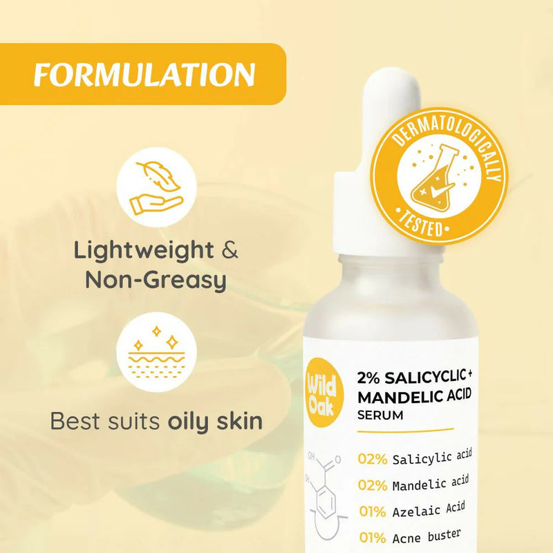 WildOak Anti Acne & Oil Control Face Serum | 3X Power of 2% Salicylic Mandelic & Azelaic Acid | Acne Buster | Anti-Acne Pore Cleansing & Skin Exfoliation | Face Serum for Men & Women | 30ml