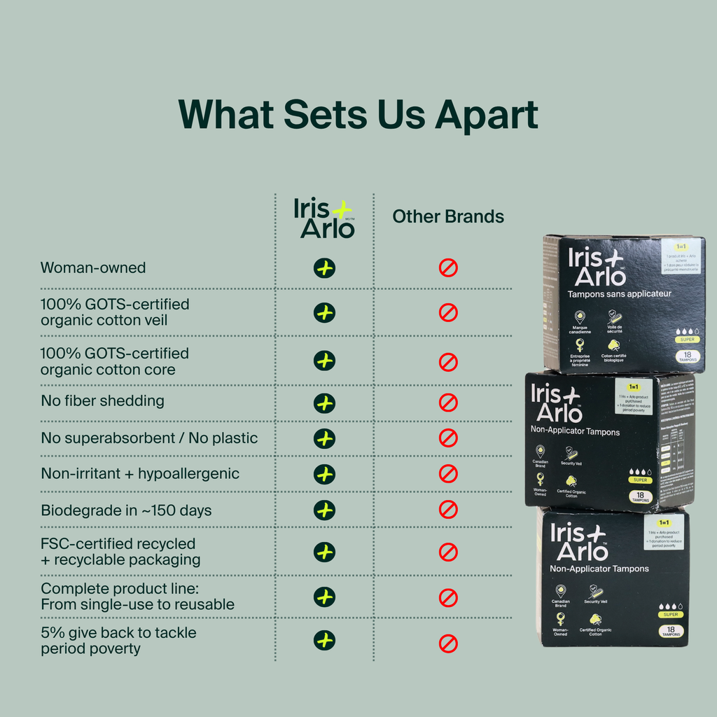 Don't let your period dictate your activities! Choose our certified 100% organic cotton tampons, adjust the level of absorption to your flow, and enjoy up to 12 hours of leakage protection.