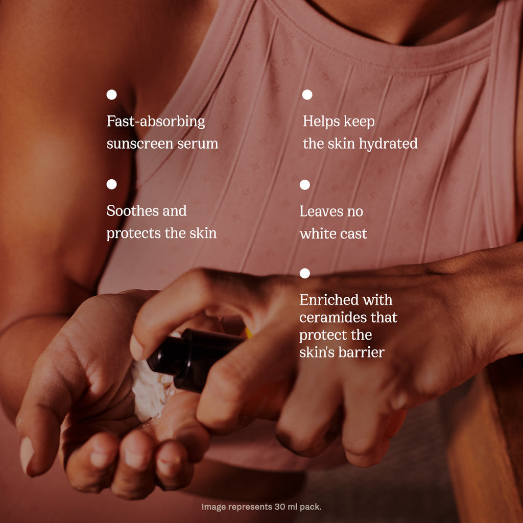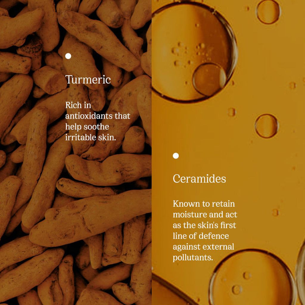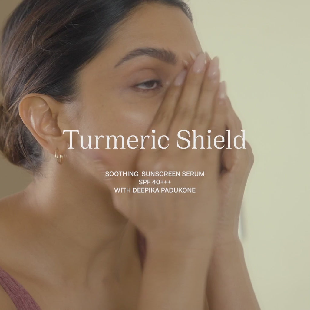 82°E By Deepika Padukone Turmeric Shield SPF 40 PA+++ is a lightweight, fast-absorbing sunscreen serum enriched with turmeric and ceramides. This fragrance-free formula provides broad-spectrum protection against UVA and UVB rays, helping to prevent skin damage caused by sun exposure. Clinically tested, it hydrates and revitalizes the skin, promoting a healthy, radiant complexion. Turmeric’s antioxidant benefits soothe irritation and shield skin from environmental aggressors like pollution and dust, restoring dryness and dullness. For best results, apply a generous, even layer to face and neck 15-20 minutes before sun exposure, after moisturizing.