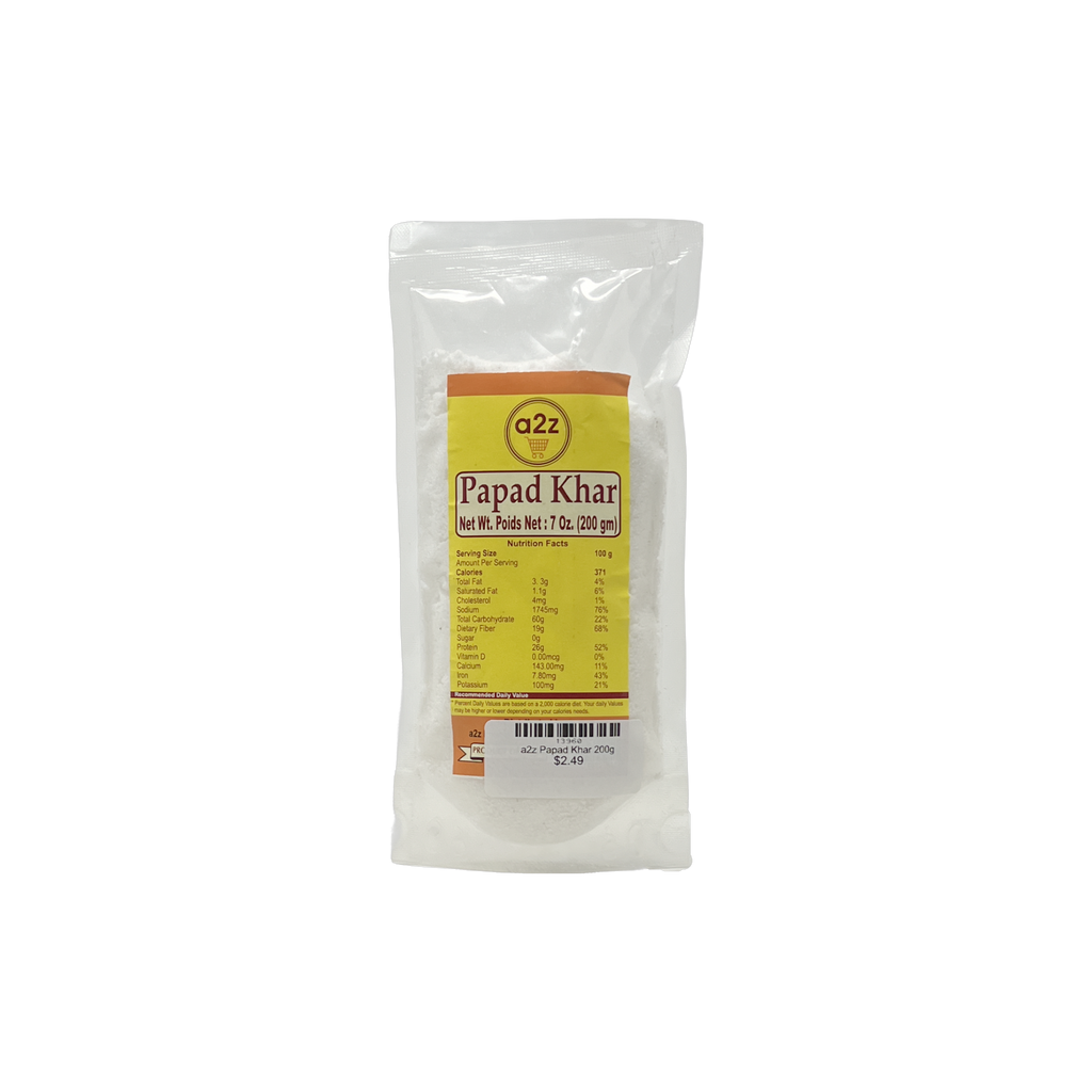 A2Z Papad Khar is a traditional culinary ingredient used in various Indian dishes, especially in the preparation of papads (also known as papadums), a popular Indian snack. This essential component is responsible for giving papads their unique texture and taste.