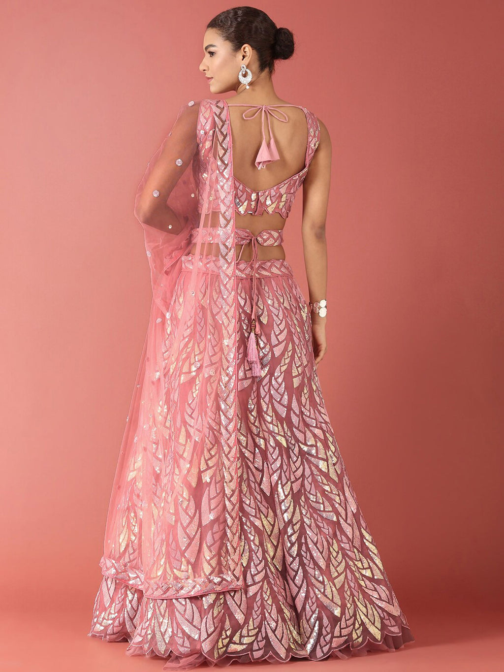 Aastha Fashion Pink Soft Net Lehenga with Sequins & Thread Embroidery