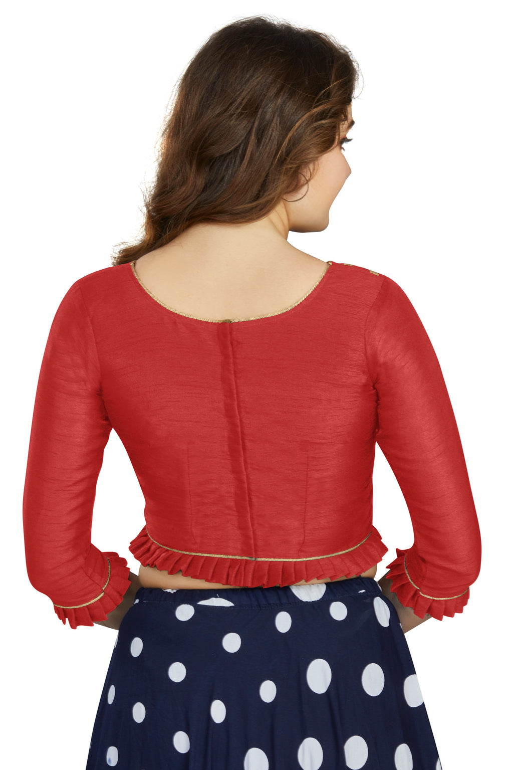 Aastha Fashion Red Art Silk Boat Neck Blouse – Bold & Beautiful