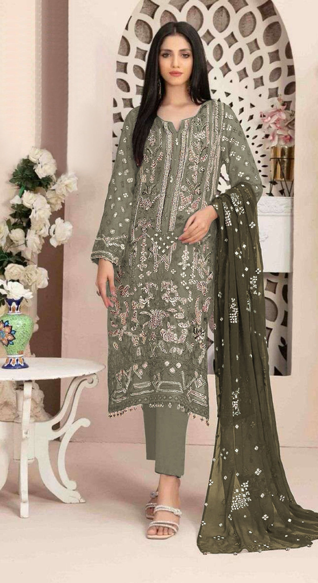 Aastha Green Dupatta with Georgette Santoon kurti fabric
