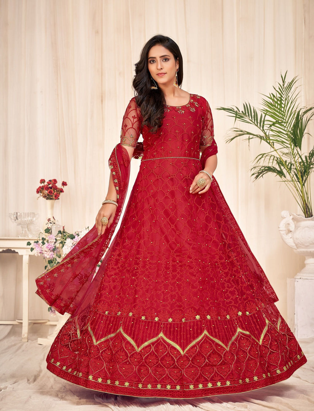 Aastha Red Dupatta with Net top fabric Crepe Bottom fabric