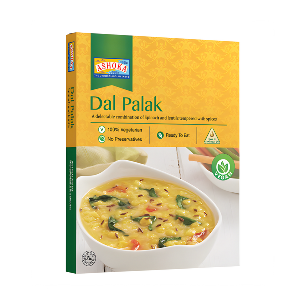 Ashoka Ready To eat Dal Palak is a delectable and convenient meal for any time of the day. It is a mix of delicious yellow lentils cooked with spinach and spices. Ready to eat in just a few minutes, this savory dish is sure to please the whole family. The perfect combination of protein and greens, this meal is healthy and tasty. Enjoy this delicious and nutritious meal without any of the hassle of cooking. Ashoka Ready To eat Dal Palak is a great choice for a quick and easy dinner.