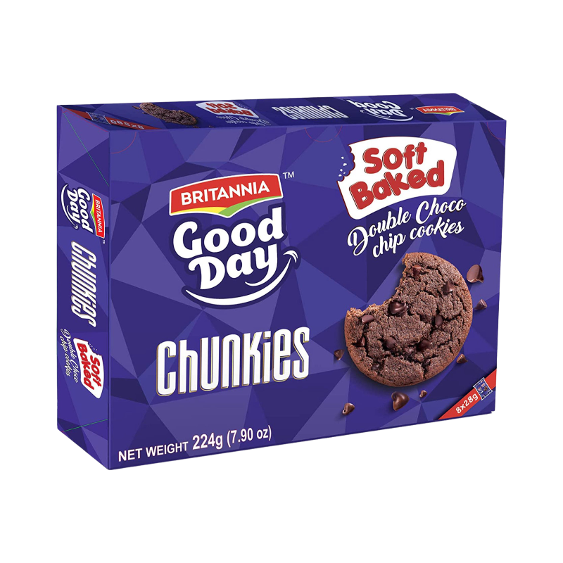 Britannia Chunkies Double Choco Chip Cookie is a soft-baked treat that is irresistibly delicious. The perfect balance of double the choco chip flavor and a crunchy texture make this cookie a favorite among young and old alike. Packed with real chocolate chips, these cookies are a great snack for any time of day or night. Enjoy them as a snack or a dessert and savor the flavor of real chocolate with every bite. Try Britannia Chunkies Double Choco Chip Cookie today and experience a unique taste sensation.