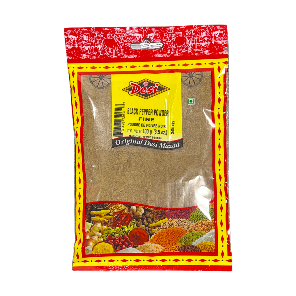 Elevate your culinary creations with the intense and vibrant Desi Black Pepper Fine Powder. Known as the 'King of Spices,' black pepper is an indispensable ingredient in Indian cooking, celebrated for its bold flavor and versatile use. Our finely ground black pepper powder is sourced from the finest peppercorns, ensuring a high-quality, aromatic addition to your spice collection.