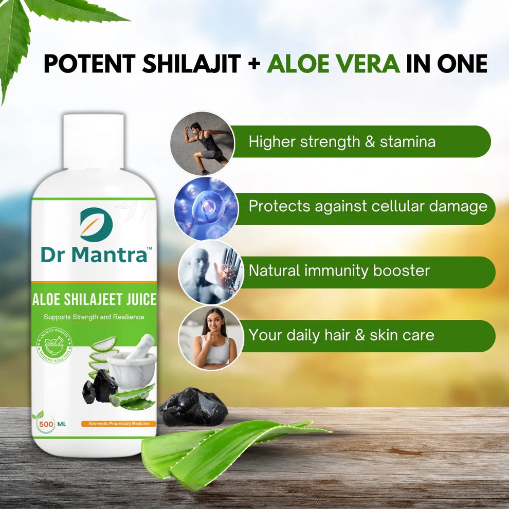 - Powerful Energy Booster: Infused with the potent combination of Aloe Vera and Shilajit, this juice naturally boosts energy levels, enhancing stamina and vitality for both men and women.