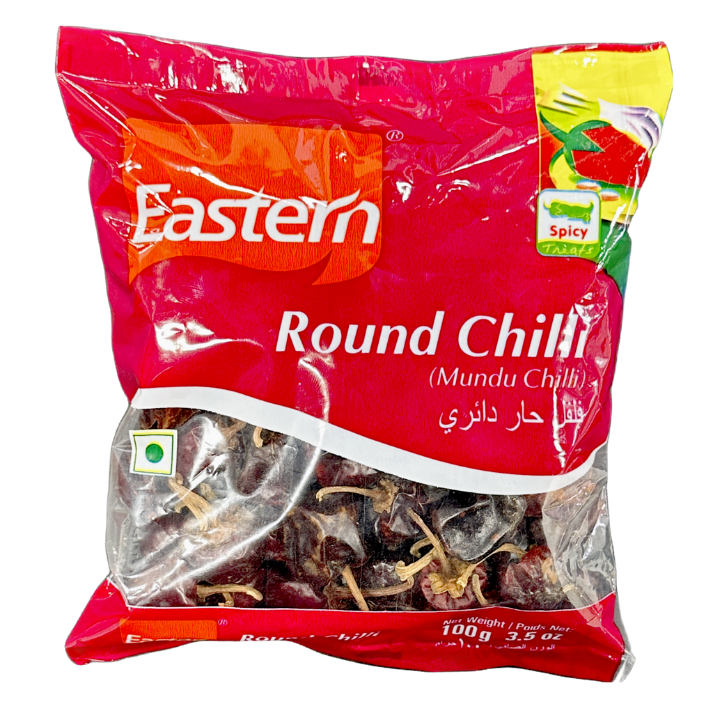 Eastern Round Chilli, also known as Mundu Chilli, is a unique variety of chili pepper that is cherished in various regional cuisines across India for its distinct flavor and moderate heat. This chili variety, with its plump, round shape and vibrant red color, adds a visually appealing touch along with a burst of warmth to dishes without overpowering them with spiciness. Eastern's commitment to quality ensures that these whole chillies are sourced from the finest crops, preserving their natural flavor and heat.