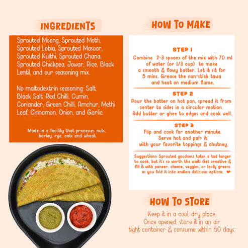 - 100% Natural: Crafted with sprouted moong, moth, lobia, jowar, and more.