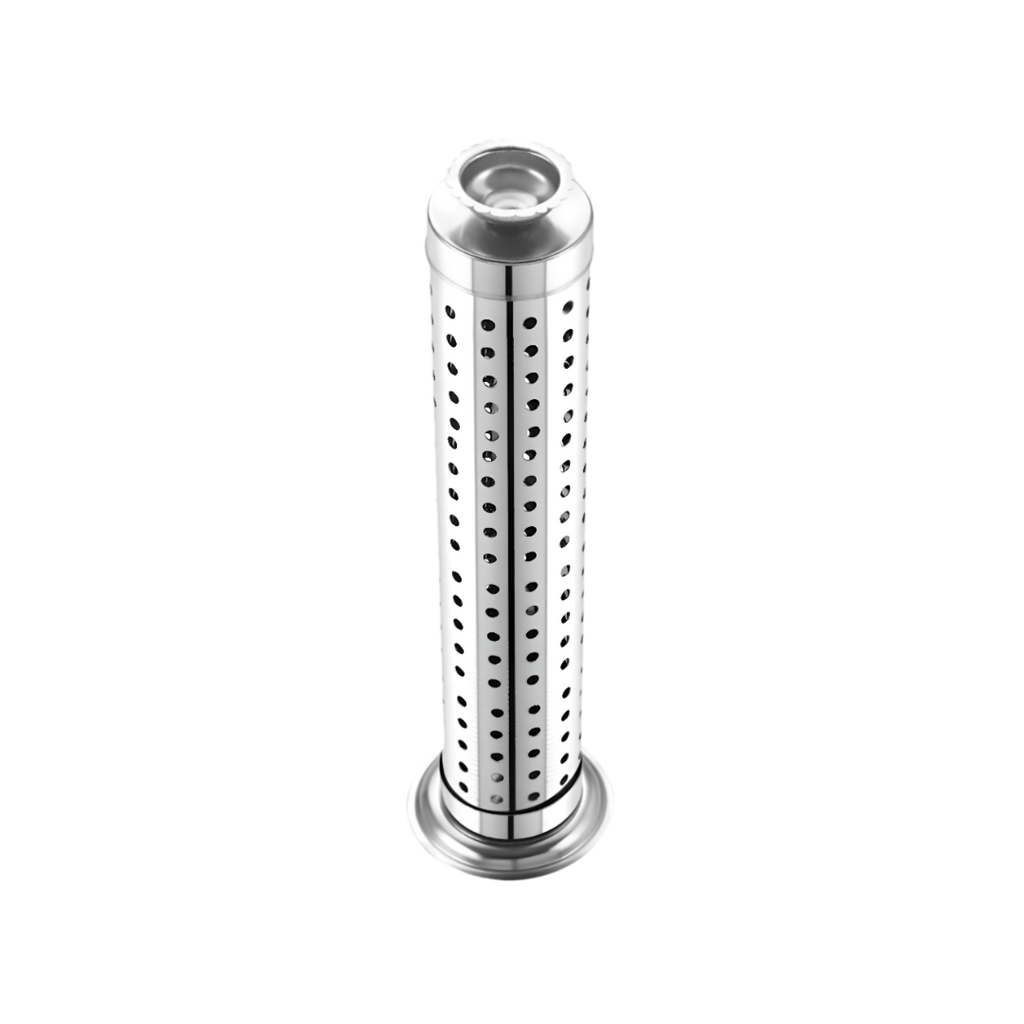 Typically crafted from durable materials such as brass, stainless steel, or ceramic, the Agarbatti Stand features a sturdy base that prevents tipping and a hole at the top where the incense stick is securely inserted. This design ensures that the ash falls directly into the stand, keeping your surfaces clean and free from ash residue.