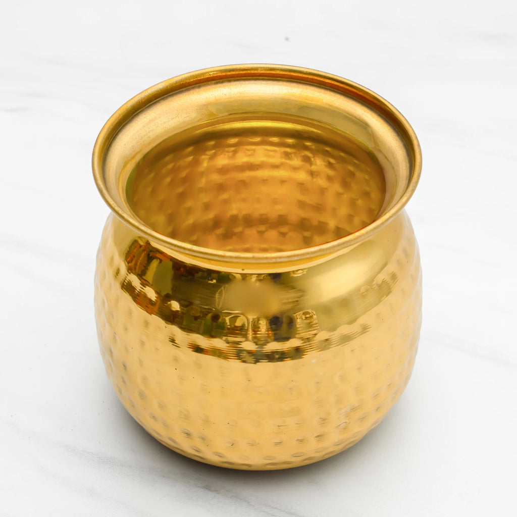 Pure Brass Cashew Lota with Hammered Finish – Lacquer Coated for Long Life