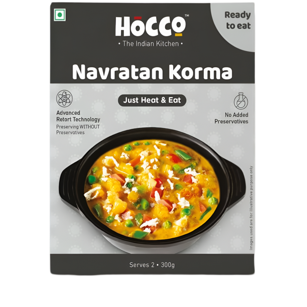 Delight your taste buds with the rich and royal flavors of Hocco Ready To Eat Navratna Korma. This exquisite dish, often referred to as the "Nine Jewels Curry," is a delicious medley of vegetables, fruits, and nuts, all simmered in a creamy, mildly spiced gravy. Perfect for those who appreciate the finer tastes of Indian cuisine, Navratna Korma is a feast for both the palate and the senses.