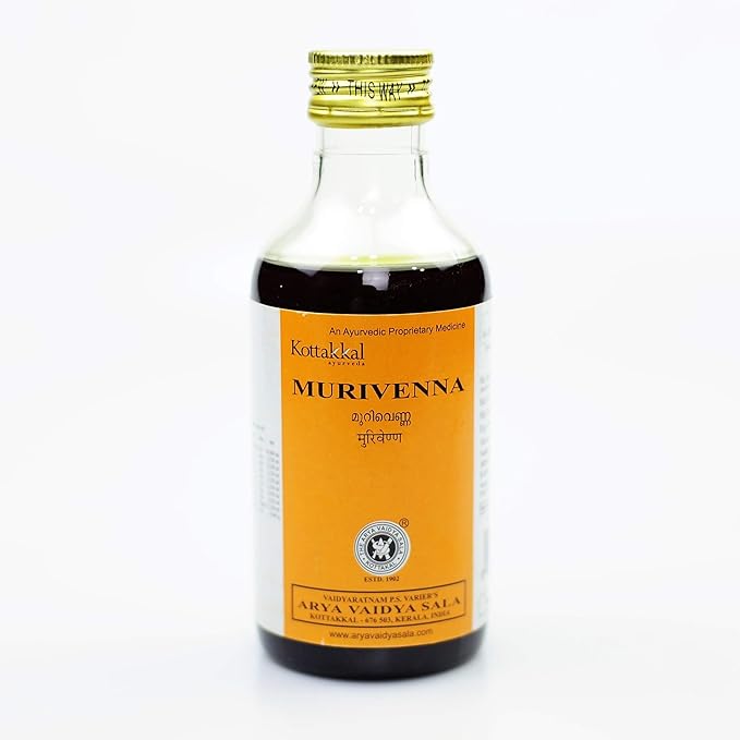 Kottakkal Arya Vaidya Sala Ayurvedic Murivenna, a time-tested therapeutic oil formulated to accelerate recovery from fractures, sprains, and stubborn wounds. This potent blend harnesses the strength of calcium-rich Tambulam to reduce inflammation and support bone healing, while Paribhadra works to mend damaged tissues and restore mobility. Kanyaka protects your joints and calms inflammatory responses, making this essential oil your natural ally against pain and discomfort. Whether you're recovering from an injury or managing chronic joint issues, Murivenna delivers the Ayurvedic care your body deserves. Apply as directed for optimal results.