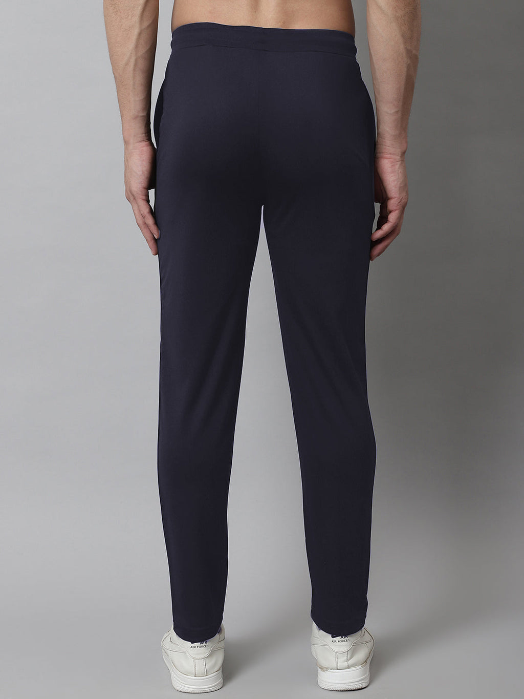 Navy Solid tapered fit track pants has an elasticated waistband with drawstring closure, 2 pockets