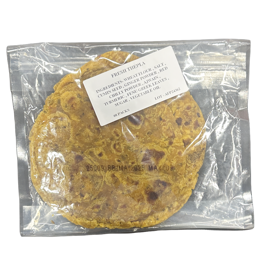Experience the authentic taste of Gujarat with Mom Made Fresh Thepla. Crafted with fresh fenugreek leaves and a blend of traditional spices, these soft, flavorful flatbreads are a staple in Gujarati cuisine. Thepla is not only a beloved breakfast item but also a popular snack and travel companion due to its extended shelf life. The inclusion of fenugreek leaves adds a unique, slightly bitter flavor that pairs perfectly with yogurt, pickles, or chutneys. Whether you're an Indian food enthusiast or exploring new culinary delights, Mom Made Fresh Thepla offers a convenient and delicious way to enjoy this traditional dish.
