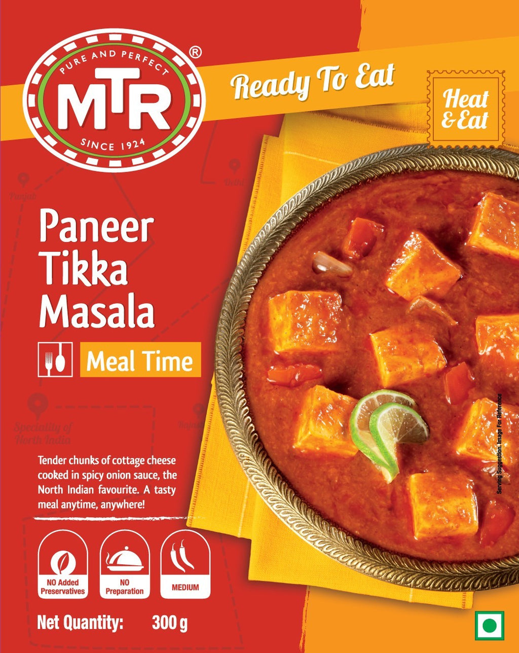 MTR Paneer Tikka Masala Ready to Eat is a delicious and easy-to-prepare Indian dish. This ready-to-eat masala is made with paneer, tomatoes, onions and a special blend of spices that give it a tantalizing flavor. Be it a weekend dinner party or a quick snack, this delicious dish is sure to please everyone's taste buds. With its enticing aroma, this masala is sure to satisfy your taste buds and make your mealtime special. Enjoy this delectable masala with naan, paratha or steamed rice for a truly delicious experience.