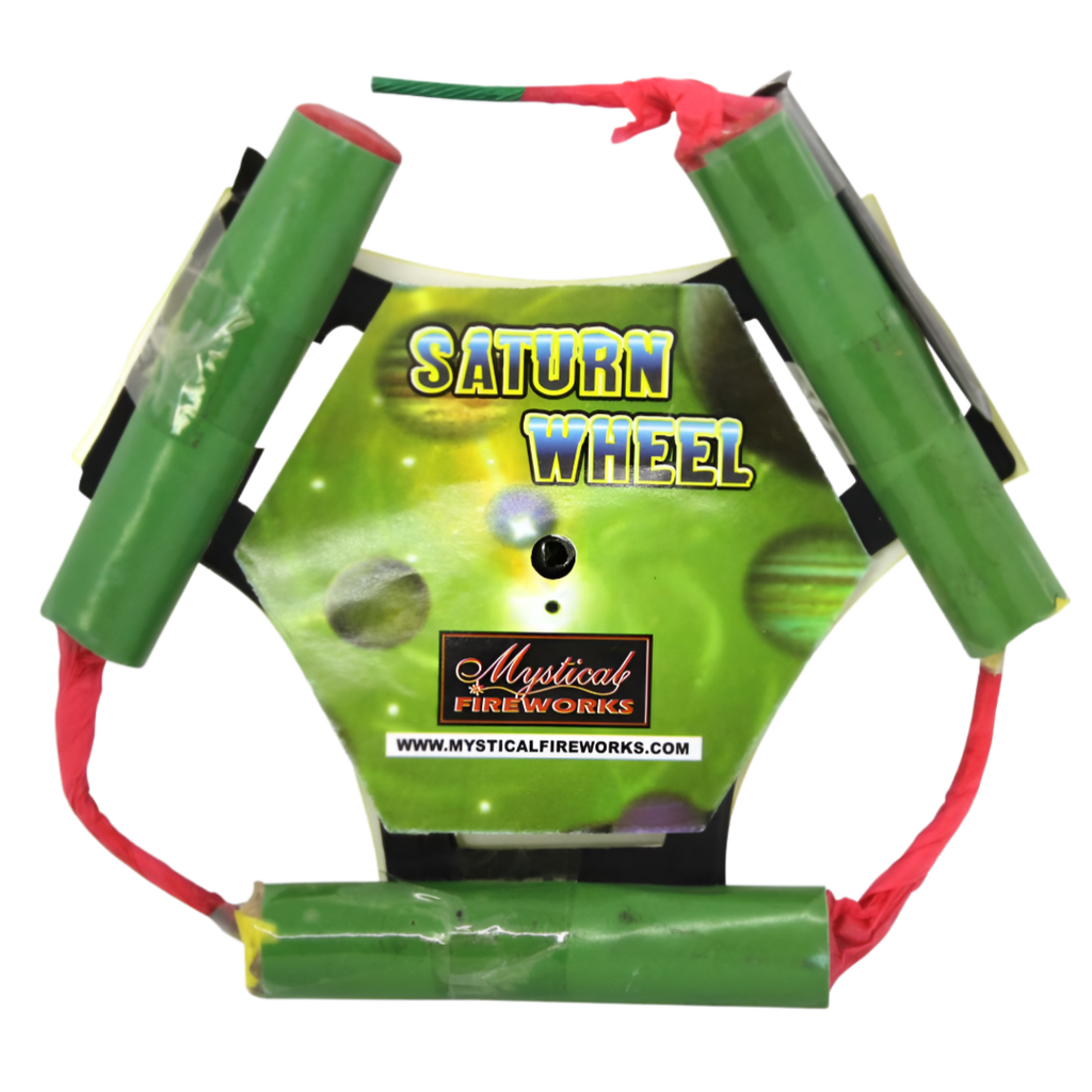 The Saturn Wheel firework is a mesmerizing spinning firework designed to captivate audiences with its vibrant colors and rapid motion. As it spins on its axis, the Saturn Wheel emits a brilliant display of light, resembling the rings of the planet Saturn. This unique and visually stunning firework is perfect for festivals like Diwali, New Year's Eve, weddings, or any festive gathering, adding an exciting, dynamic element to your celebration.