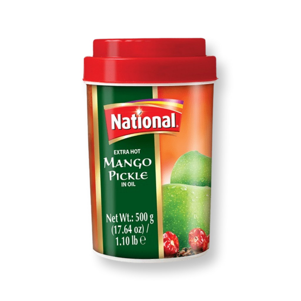 National Extra Hot Mango Pickle is not your ordinary pickle; it's for those who crave intense, fiery flavors. Made from premium mangoes and a blend of hot spices, this pickle is sure to set your taste buds tingling.