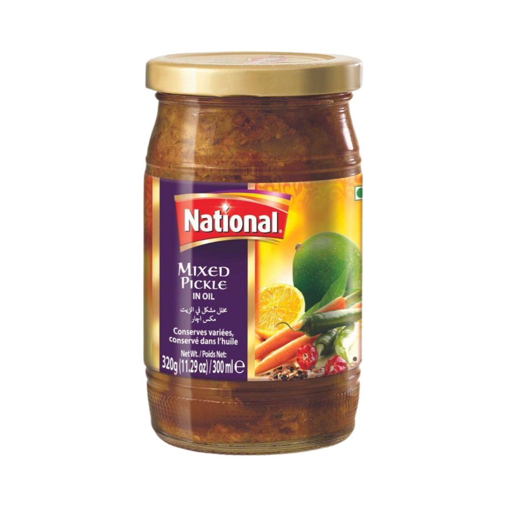 National Mixed Pickle is a delightful medley of assorted vegetables and fruits that have been expertly pickled to create a tangy, spicy, and flavorful condiment. This traditional South Asian pickle is known for its bold and zesty taste, making it a popular accompaniment to a wide range of dishes.