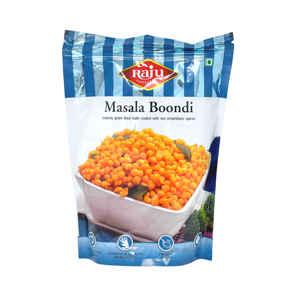 Raju Namkeen Masala Boondi 400g is a flavorful and crispy Indian snack crafted for those who love bold, authentic tastes. Made from chickpea flour (besan) mixed with water and spices, each tiny droplet is deep-fried to golden perfection, creating a crunchy texture and a savory, spicy kick in every bite. Enjoy it straight from the pack, or explore more Masala Boondi options to elevate your snack time.