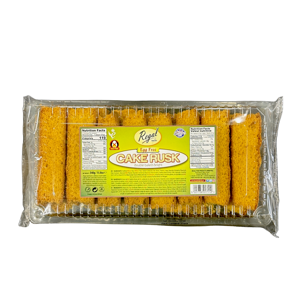 Regal Bakery Eggless Cake Rusk is a delightful twist on a traditional Indian snack, offering the same irresistible crunch and sweet, buttery flavor as the classic version, but without the use of eggs. This makes it an excellent choice for vegetarians, vegans, and anyone with egg allergies or dietary restrictions who doesn't want to miss out on the cherished experience of dipping a crispy rusk into their tea or coffee.